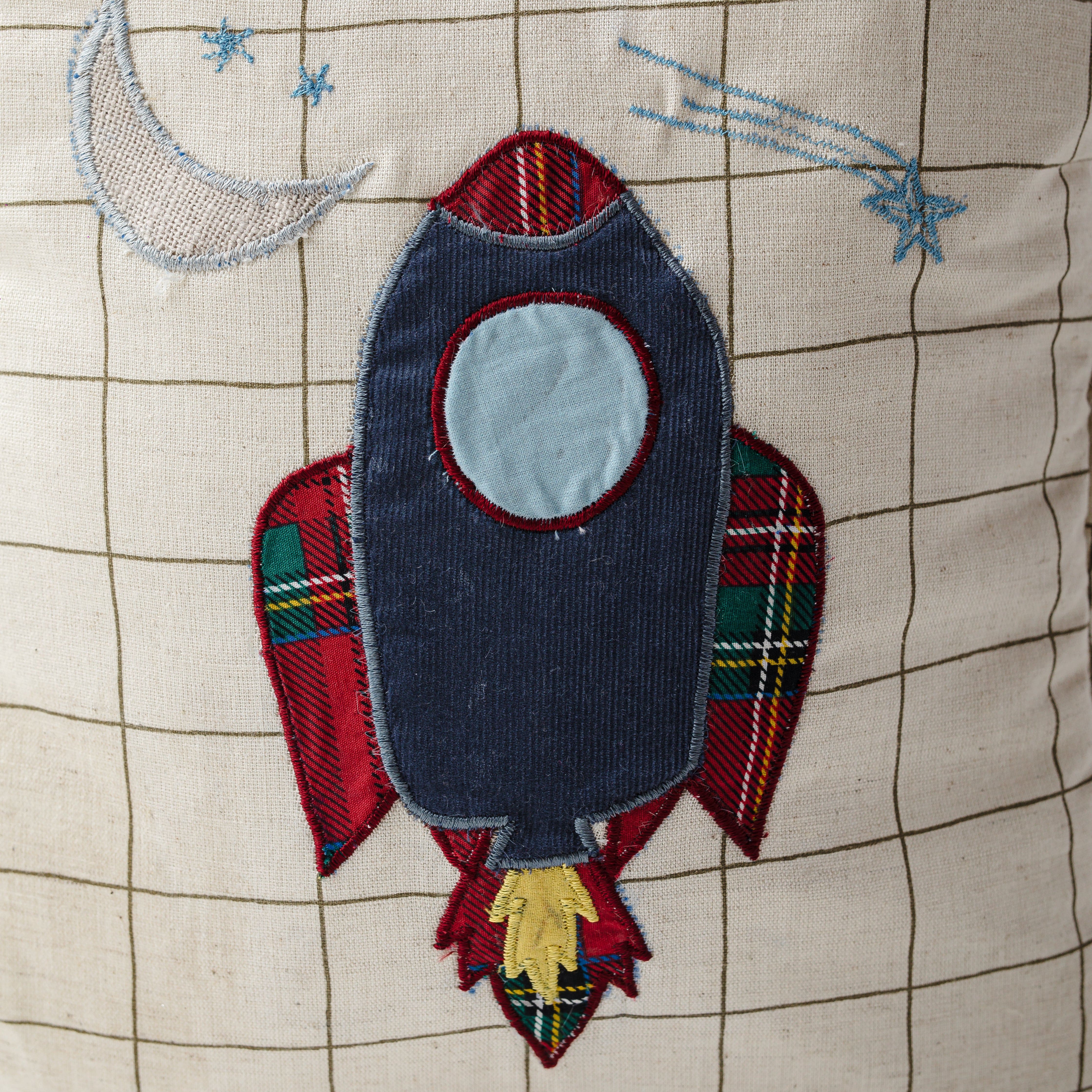 Zoey’s pure cotton, handcrafted, plastic free School Backpack! Adorable and super functional backpack has plenty of storage space for toddlers to carry books, snacks, water bottle and more. Made of pure cotton fabric with cotton straps, the bag is handcrafted in Kasganj (UP) by experienced artisans. The feisty Rocket patchwork is also made of cotton fabric is neatly embroidered on the bag. It has one main compartment with two side pockets, inner zipped pocket and 2 small organizer. The straps are soft with padding and adjustable buckle. Being made of pure cotton the bag can simply be machine washed any number of times. The size of the bag is ideal for 2+ Years toddlers