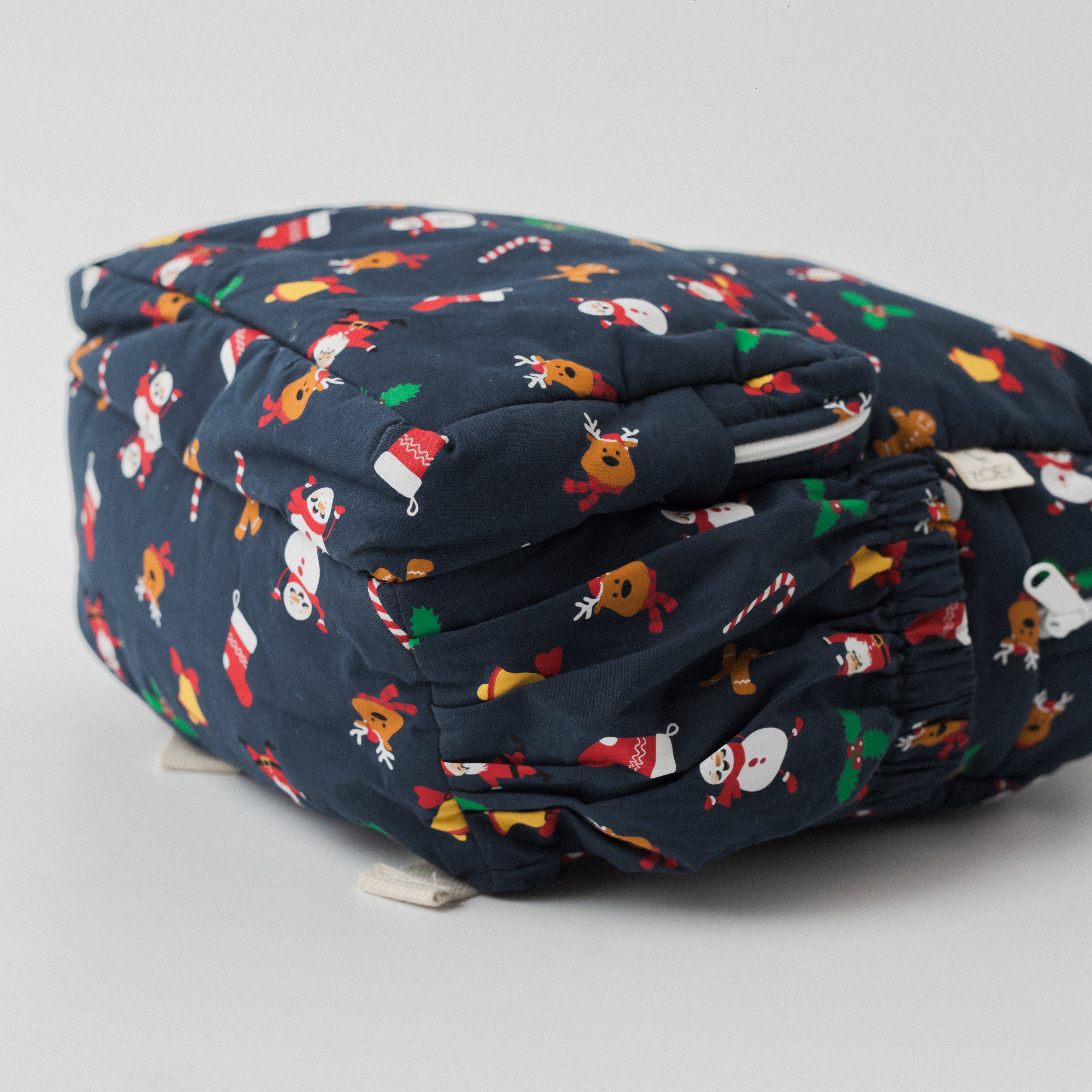 Zoey’s pure cotton, plastic free School Backpack! Adorable and super functional backpack has plenty of storage space for toddlers to carry books, snacks, water bottle and more. Made of pure cotton fabric with cotton straps, the bag is handcrafted in Kasganj (UP) by experienced artisans. It has one main compartment with two side pockets, inner zipped pocket and 2 small organizer. The straps are soft with padding and adjustable buckle. Being made of flannel cotton the bag can simply be machine washed any number of times. The bag comes in two sizes, the big one is more functional for school purpose while the small one is super adorable to carry on casual outings.