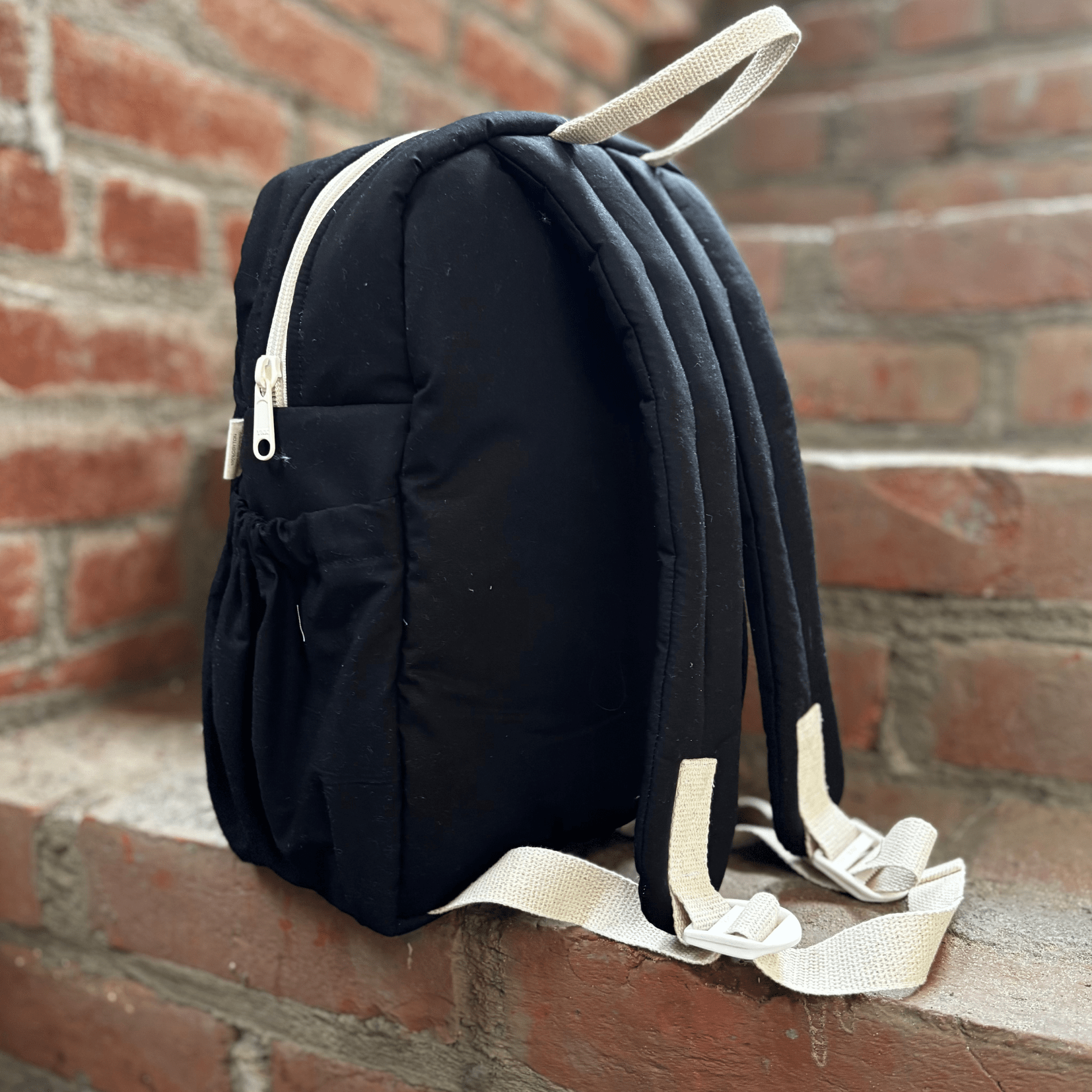 This adorable black backpack is all set to bring Halloween fun wherever your little one goes! Made from soft yet sturdy fabric, it features a **vibrant embroidered pumpkin patch** – cheerful, festive, and just the right mix of spooky and cute.